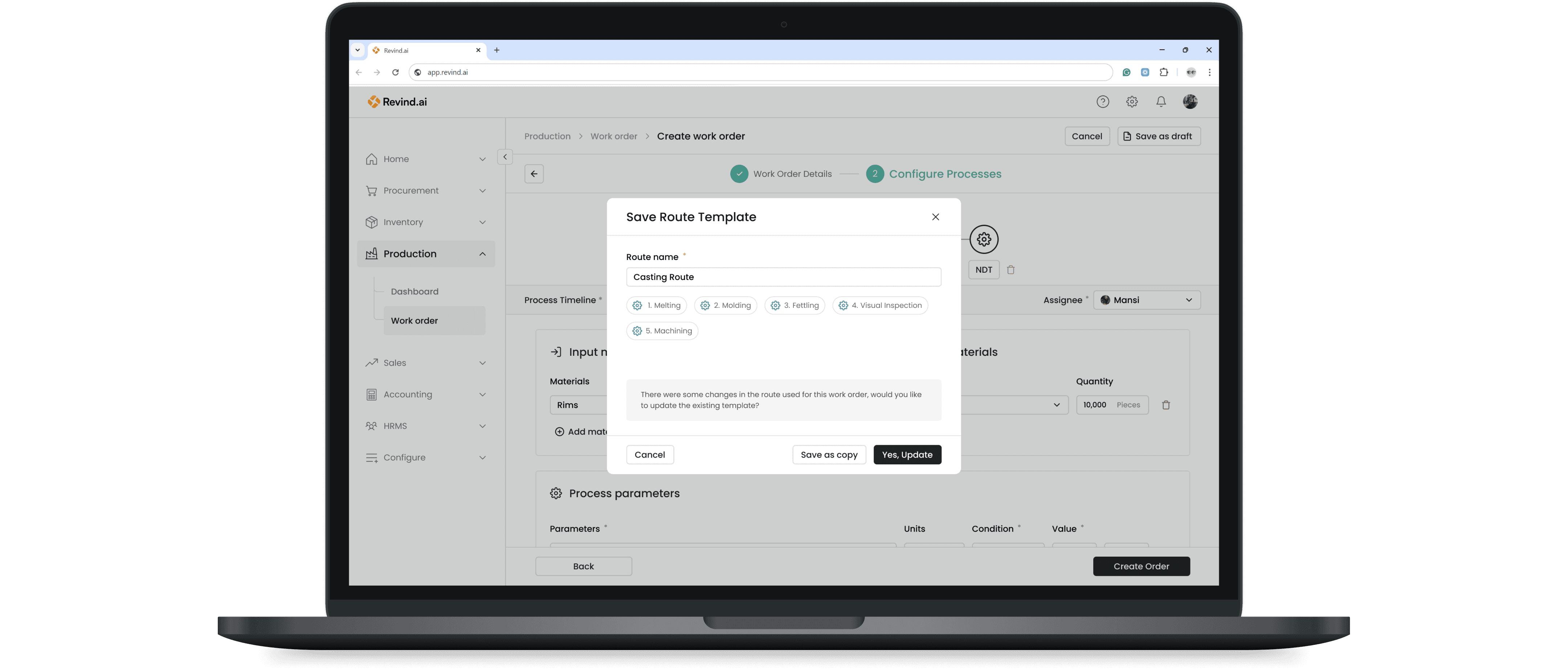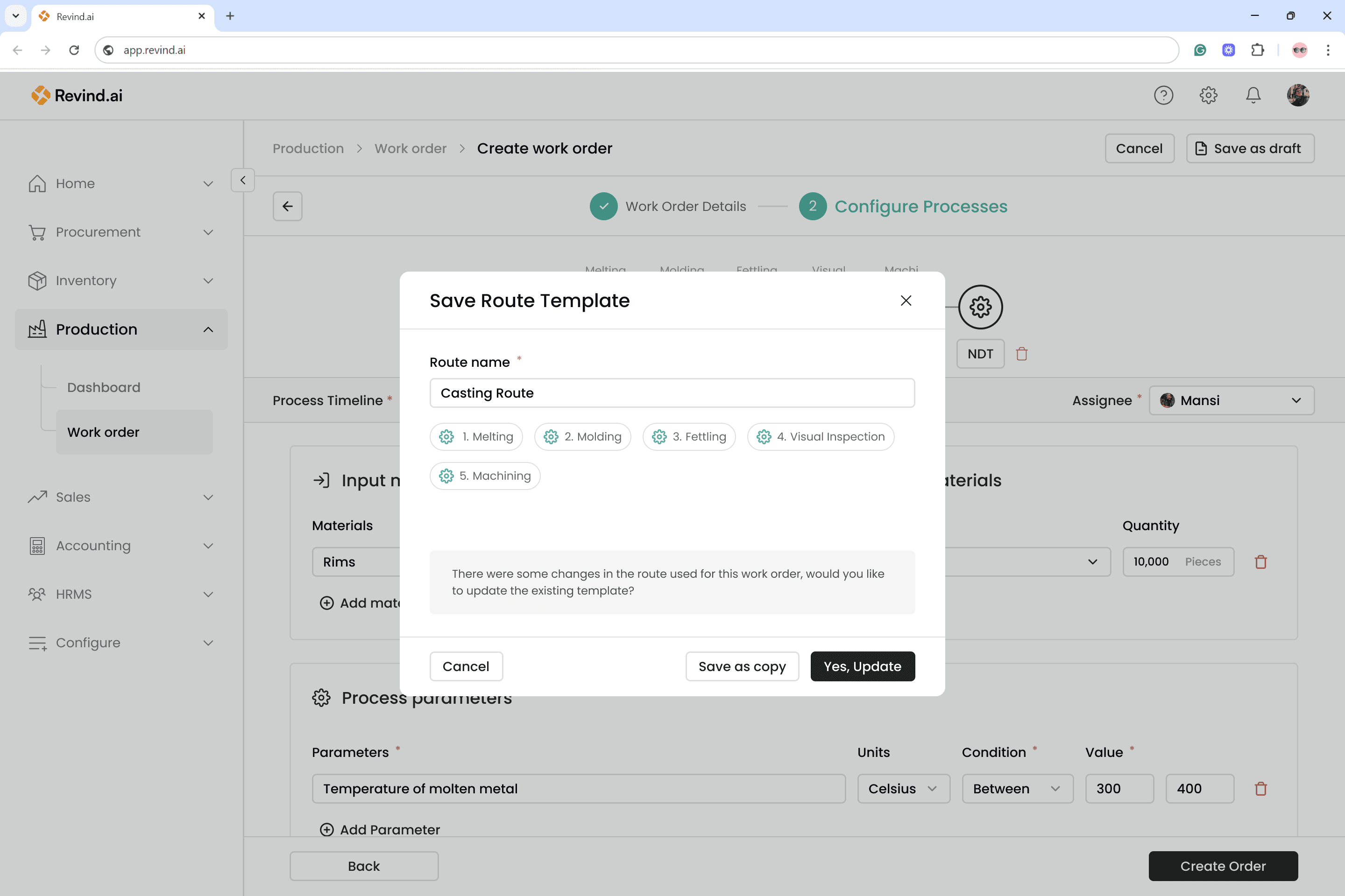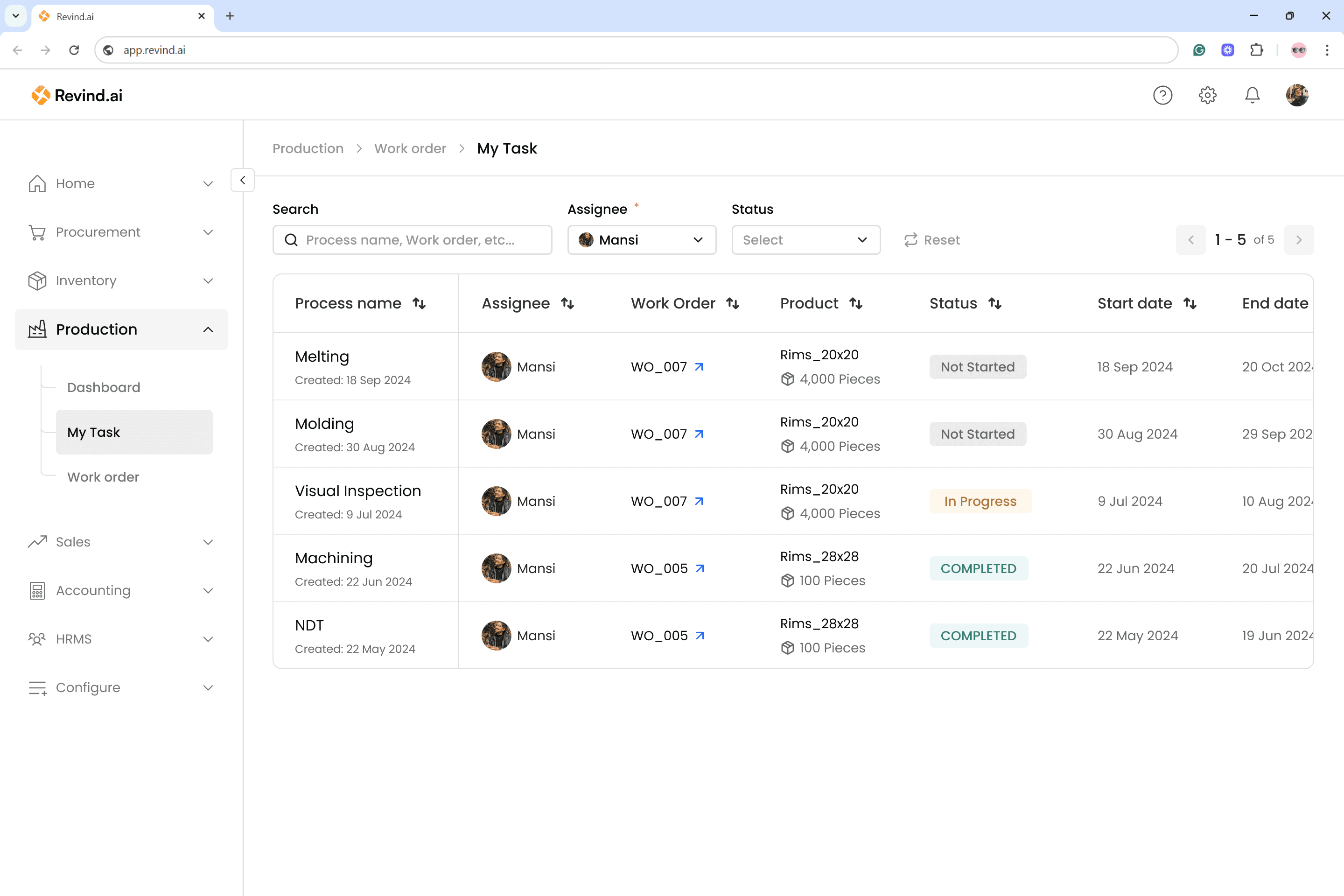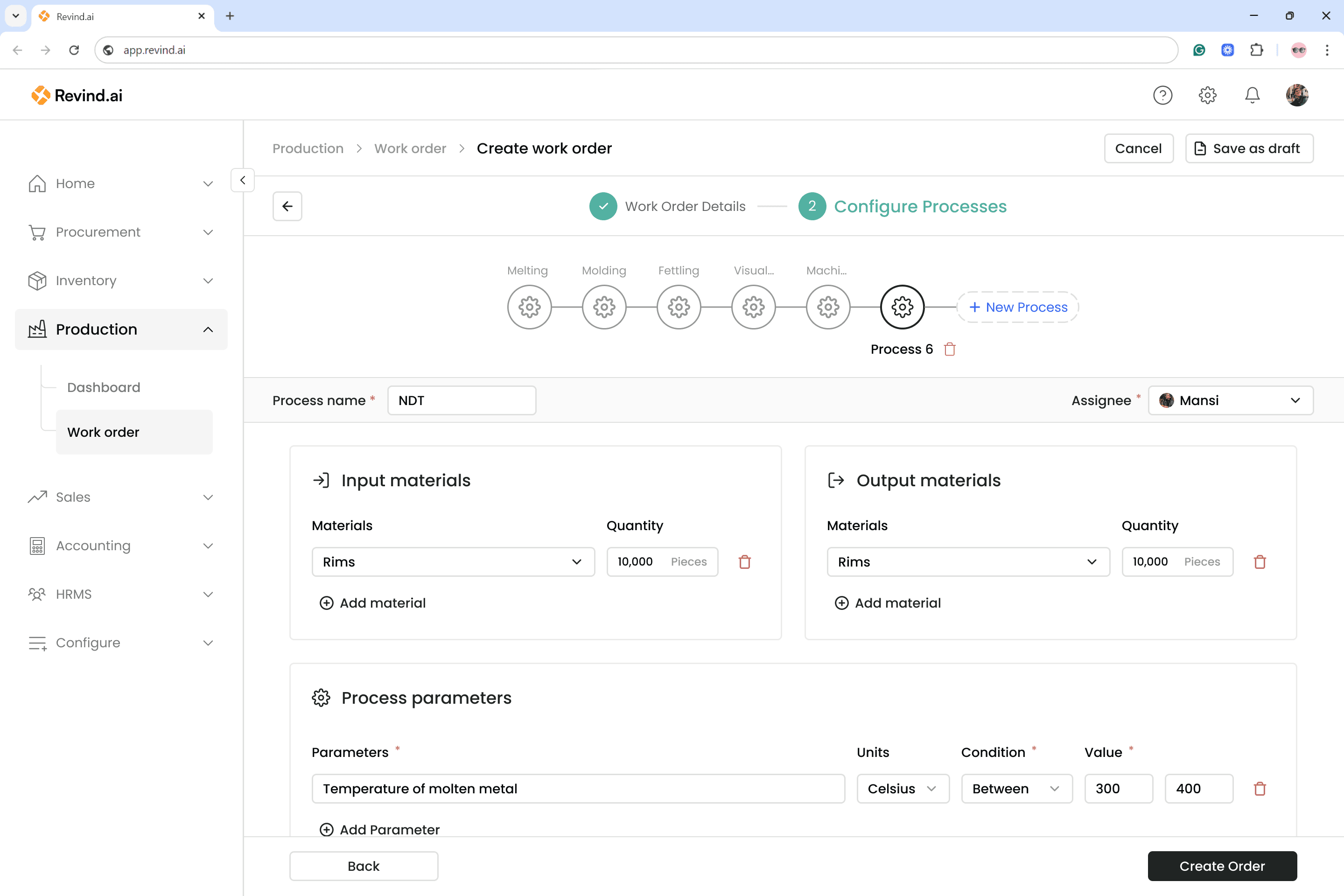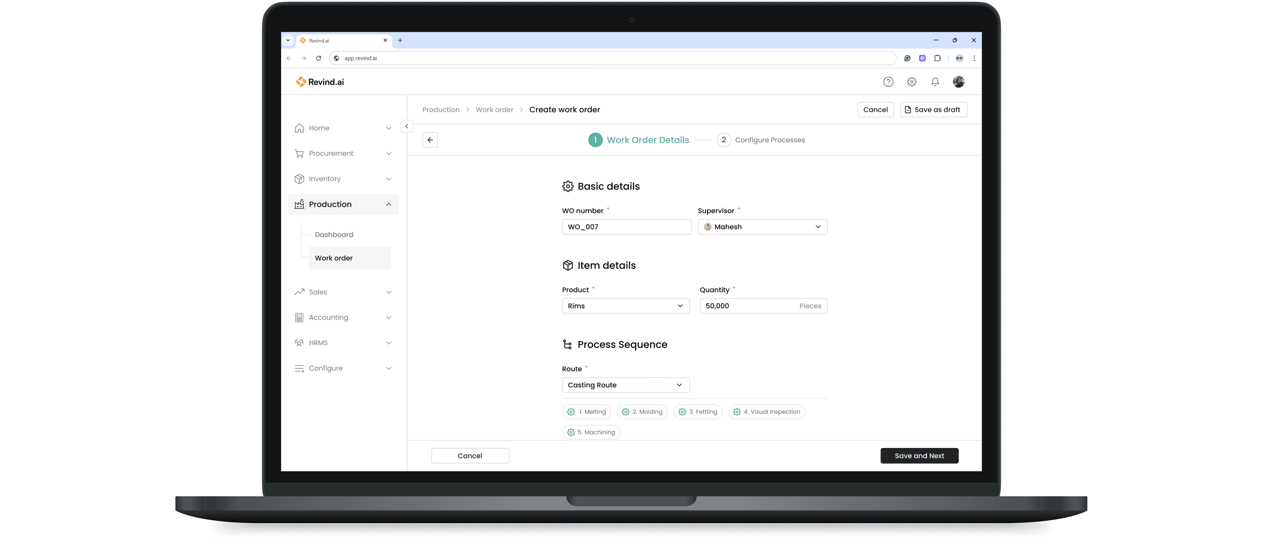 Revind has introduced the “Work Orders” feature to manage all your production needs. You can now create production plans based on upcoming sales orders from the sales team and also track the progress of previous work orders in real time.