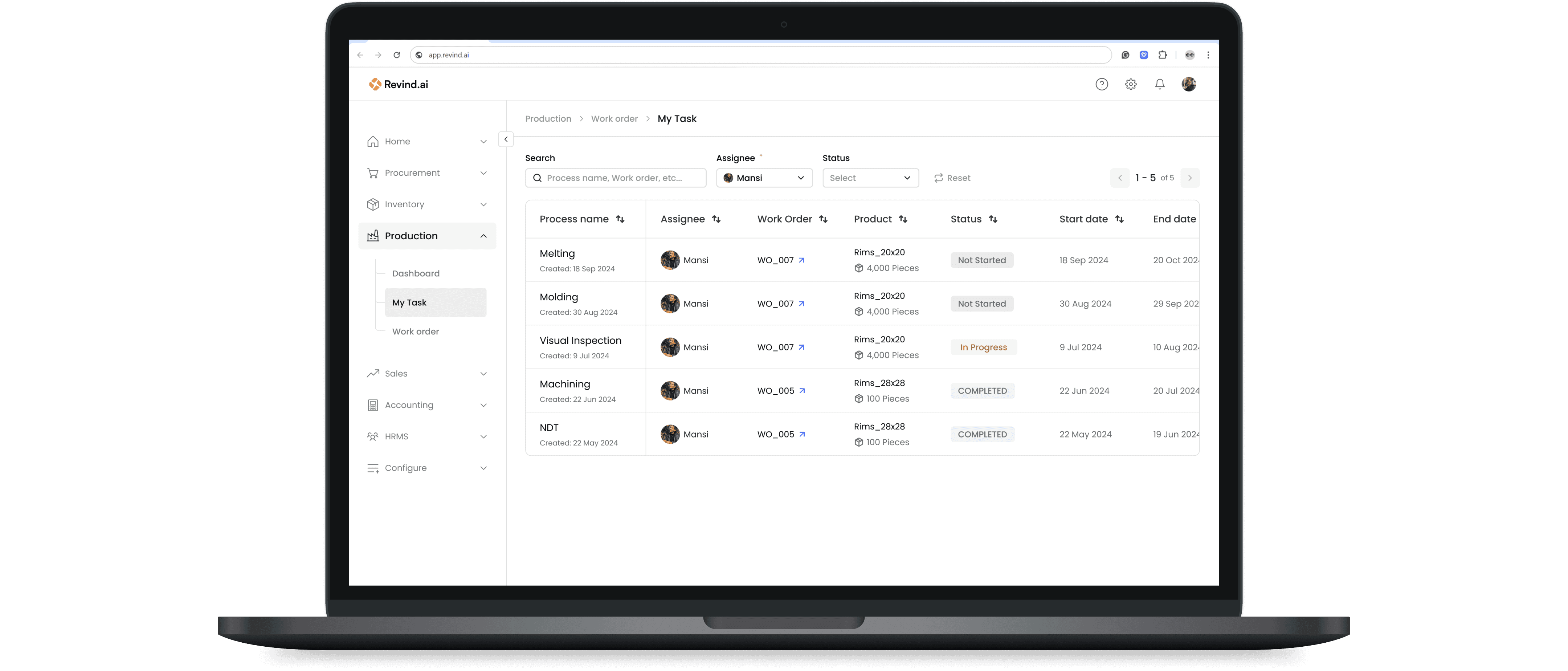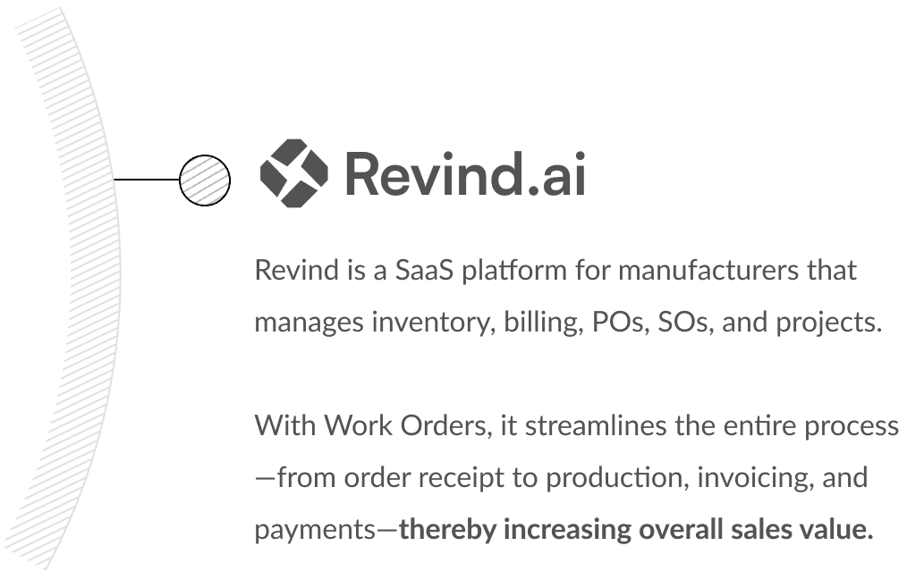 Revind is a B2B SaaS tool built for manufacturers. It helps them manage everything—from inventory and orders to raising RFQs and tracking production. With Revind, manufacturers can handle the entire process, starting from enquiries all the way to finished goods, in one easy-to-use platform.